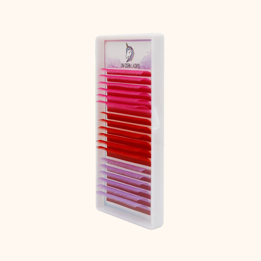 پالت مژه رنگی یونیکورن میکس 6 در دسته ی مژه های رنگی و فانتزی می باشد. این پالت ترکیب بسیار زیبایی از مژه هایی با بیش قرمز، صورتی و بنفش دارد. مژه های رنگی به دلیل ویژگی های خاصی که دارند، بسیار مورد توجه اساتید کاشت مژه و اکستنشن که به شکل مستر فعالیت می کنند قرار گرفته است. استفاده از این پالت به این افراد اجازه می دهد، مدل های هنری و فانتزی فوق العاده ای را ارائه دهند.