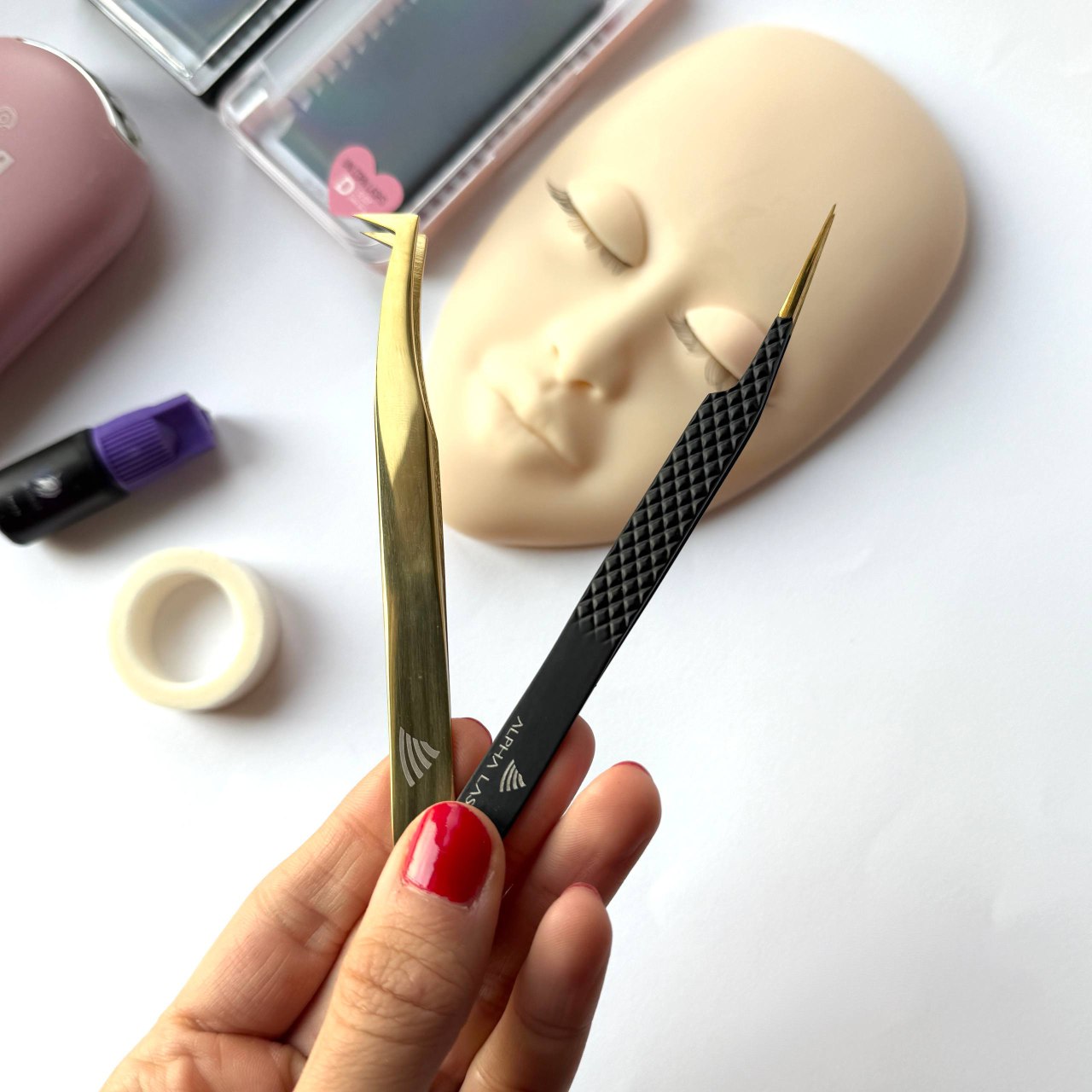 * پنس سرصاف آلفا: یک پنس کمکی حیاتی که جهت نگهداری و جدا کردن مژههای طبیعی مشتری در حین کار استفاده میشود.