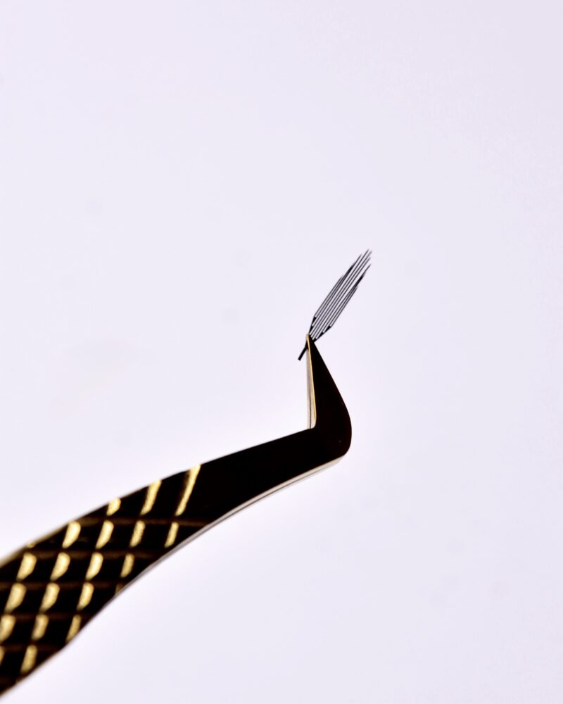 - مژه را در فاصله حدود ۰.۵ میلیمتر از ریشه مژه طبیعی نصب کنید و اجازه دهید خشک شود.